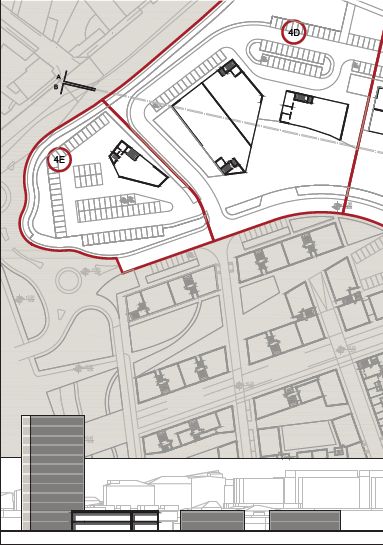 A questo incubo urbanistico non poteva mancare la “torre”, un edificio di 42,7 metri di altezza, che nel profilo altimetrico viene messo un po’ defilato per farlo notare poco,