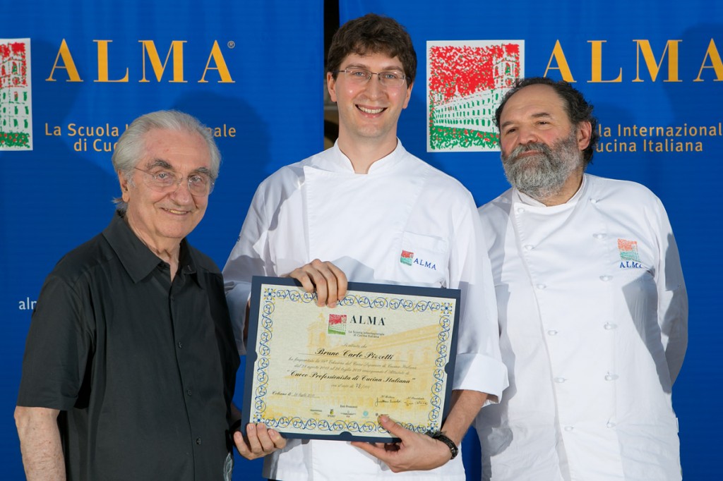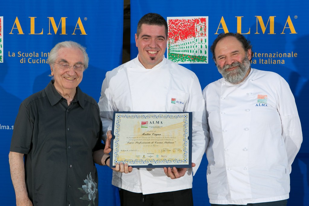 Tra i 68 studenti della XVIII edizione del Corso che hanno conseguito il diploma di Cuoco Professionista di Cucina Italiana, una menzione particolare meritano Cecilia Castellani e Andrea Carena, che con il punteggio di 93/100 e 91/100 si sono rivelati i migliori allievi. Classe ’91, Cecilia Castellani, è di Firenze e in ALMA ha precedentemente frequentato il Corso Tecniche di Base. Ha svolto lo stage presso il ristorante Corte degli Alfieri di Magliano Alfieri (CN) alla corte dello chef Stefano Paganini. Il “mentore” di Andrea Carena, ventiquattrenne di Trieste, è stato invece lo chef Marco Fadiga, del Ristorante Marco Fadiga Bistrot di Bologna. La XIX edizione si è conclusa con la proclamazione di altri 62 cuochi professionisti. In questa edizione si sono distinti Francesco Sangalli, miglior allievo con il punteggio di 90/100 e Doriana De Rosa con la miglior tesi, “Scoperte. Dal Friuli al Veneto”. Francesco Sangalli, ventitreenne di Brescia, ha svolto lo stage al Ristorante Torre del Saracino di Vico Equense (NA) dallo chef Gennaro Esposito.