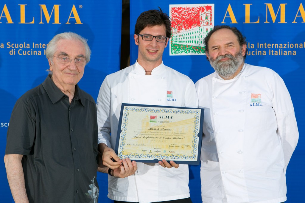 In tutto sono 130 i neo cuochi professionisti della Cucina Italiana diplomati nell’ambito della XVIII e XIX edizione del Corso Superiore di Cucina Italiana della scuola internazionale ALMA, al termine di un percorso formativo a tempo pieno di 10 mesi. Tra i diplomati, Michele Borrini, Buno Carlo Pizzetti, di Cremona, Mattia Cagna di Casalmaggiore e Luca Imberti di Soncino. La cerimonia di consegna dei diplomi è avvenuta nella splendida cornice del giardino della Reggia di Colorno alla presenza del direttivo della scuola, del corpo docenti e del Rettore Gualtiero Marchesi. Enzo Malanca, Presidente di ALMA, si è complimentato con i ragazzi per l’ottimo risultato conseguito ricordando che “dal 2004 su 1052 iscritti si sono diplomati 838 cuochi professionisti”. La validità dei corsi ALMA è infatti sostenuta dal metodo didattico dove rigore e disciplina sono ingredienti fondamentali della crescita professionale e umana dei giovani aspiranti chef. Malanca ha anche ricordato la “missione” della scuola: “formare professionisti che siano ambasciatori della cultura agroalimentare italiana nel mondo, un settore in cui l’Italia è maestra e che va difeso partendo innanzitutto dalla base, la formazione”.