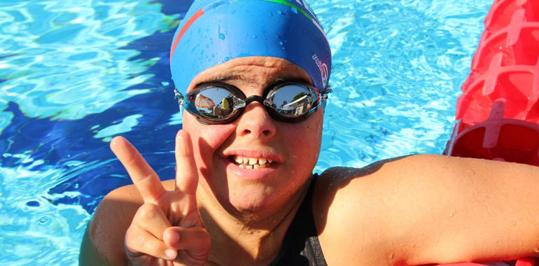 Maria Bresciani ai Trisome Games di Firenze, dove per la prima volta sono stati raggruppati i campionati del mondo di 9 discipline sportive per atleti con Sindrome di Down, vince 14 medaglie su 14 gare disputate.