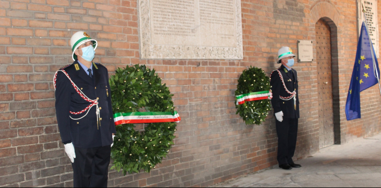 Questa mattina, mercoledì 4 novembre, in occasione del Giorno dell’Unità Nazionale e della Giornata delle Forze Armate, il Sindaco Gianluca Galimberti, il Prefetto Vito Danilo Gagliardi e il Presidente del Consiglio Comunale Paolo Carletti, si sono ritrovati sotto i portici del Palazzo Comunale davanti alla stele che riporta il Bollettino della Vittoria per un momento di raccoglimento. Prima hanno risuonato le note del Silenzio, mentre due agenti della Polizia Locale, in alta uniforme, erano posti ai lati della stele davanti alla quale era già state collocate due corone d’alloro, una delle Autorità civili, militari e delle Associazioni combattentistiche di Cremona e l’altra di Regione Lombardia. Un commemorazione in forma sobria nel rispetto delle vigenti norme per l’emergenza sanitaria.