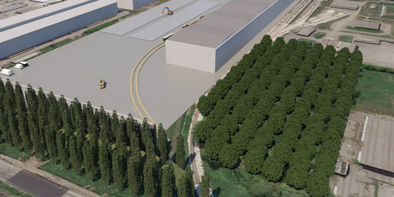 Il progetto prevede, tra le altre cose, la realizzazione di un capannone insonorizzato dove si svolgeranno le principali attività di stoccaggio e lavorazione del rottame ed un’ampia barriera verde fronte strada, dotata di un pannello fonoassorbente in grado di schermare l’area sia dal punto visivo che acustico.