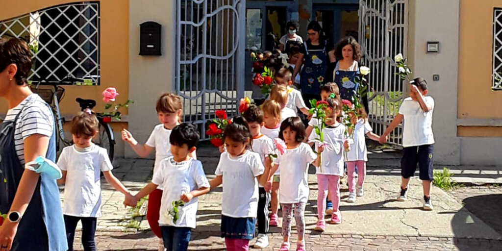 Per la festa della mamma, i bimbi, dopo aver donato alle mamme delle piantine, hanno piantato e nel giardino della scuola ai piedi della statua di Maria due cespugli di rose bianche, simbolo di purezza e di spiritualità. Federica Bandirali