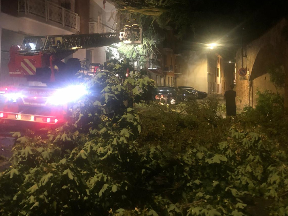 Vigili del Fuoco al lavoro per tutta la notte e anche questa mattina per ripristinare condizioni di sicurezza in città, dopo la bufera del tardo pomeriggio di lunedì. Le squadre sono state impegnate fin da subito nel taglio dei fusti di alberi che si sono schiantati a terra, in varie zone del centro e della periferia, come in via Trebbia e in via Fulcheria. In via Palio dell’Oca una pianta del giardino di villa Mina Bolzesi si era inclinata oltre il muro perimetrale andando a invadere la strada.