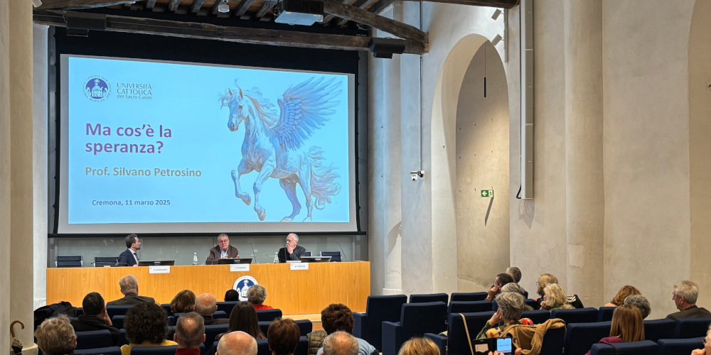 L’evento inaugurale di martedì pomeriggio ha portato una riflessione su cosa sia la speranza attraverso le parole del filosofo Silvano Petrosino, Docente di Teorie della Comunicazione e Antropologia religiosa e media alla Facoltà di Scienze Linguistiche e Letterature Straniere dell’ateneo. Presente in Aula Magna anche il vescovo di Cremona mons. Antonio Napolioni.