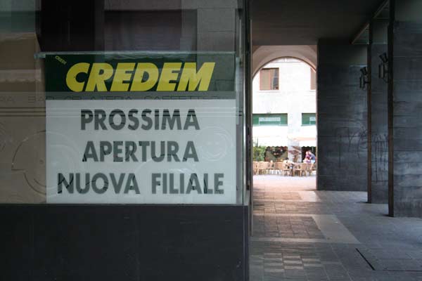 E’ questione di pochi giorni l’apertura nell’ ex Casa di Bianco (proprio di fronte alla Banca d’Italia) della nuova filiale del Credem (Credito Emiliano), dove solo per qualche mese ha avuto spazio un bar-gelateria. La banca ha suoi uffici al piano superiore ma ora avrà anche un accesso da via Verdi-via Capitano del Popolo.