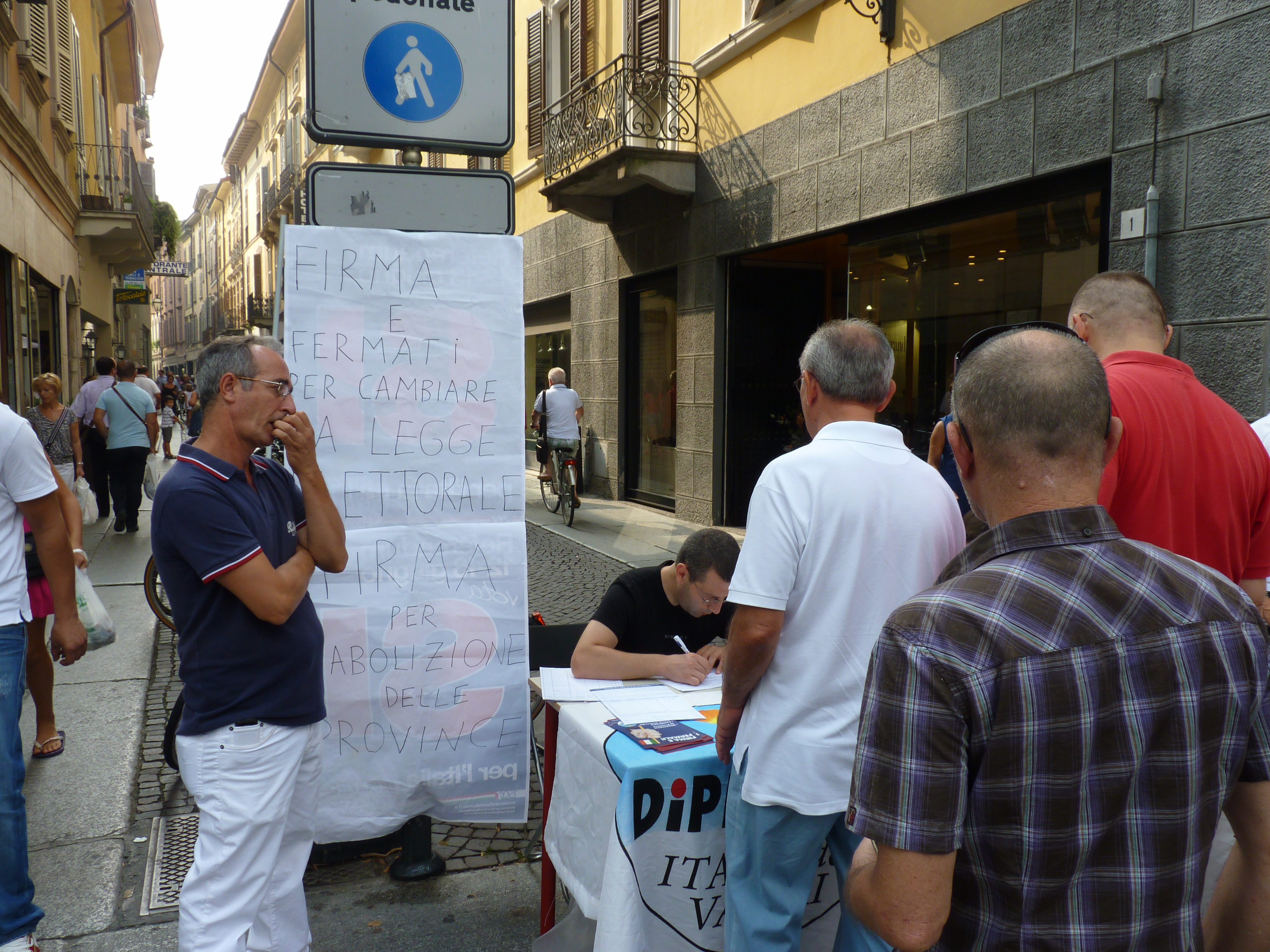 C’è voglia di cambiare. Ai banchetti referendari dove si raccolgono le firme per cambiare la legge elettorale ci sono state code durante tutta la mattinata nella zona del mercato. Da una parte, all’inizio di via Solferino (davanti giardini pubblici), i tavolini dell’Italia dei valori. Dall’altro, sul lato di piazza Roma di fronte a via Gramsci, quelli del comitato Libera Scelta. Il modulo da sottoscrivere è anche disponibile presso gli Urp di tutti i Comuni e a Cremona allo Spazio Comune di Piazza Stradivari (dal lunedì al venerdì dalle 8,30 alle 13,30; il mercoledì dalle 8,30 alle 18,30; il sabato dalle 8,30 alle 12,30). Si punta ad abrogare il ‘porcellum’, che ha eliminato la possibilità di indicare preferenze. Firme anche per un disegno di legge di iniziativa popolare per cancellare le province al banchetto dell’Idv.