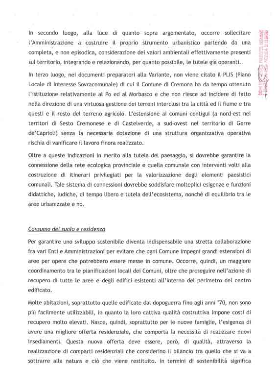 Nel documento si prendono in esame i diversi temi della Variante con indicazioni, suggerimenti e prese di posizione che spesso sono in contrapposizione con quanto finora emerso dalle linee comunali.