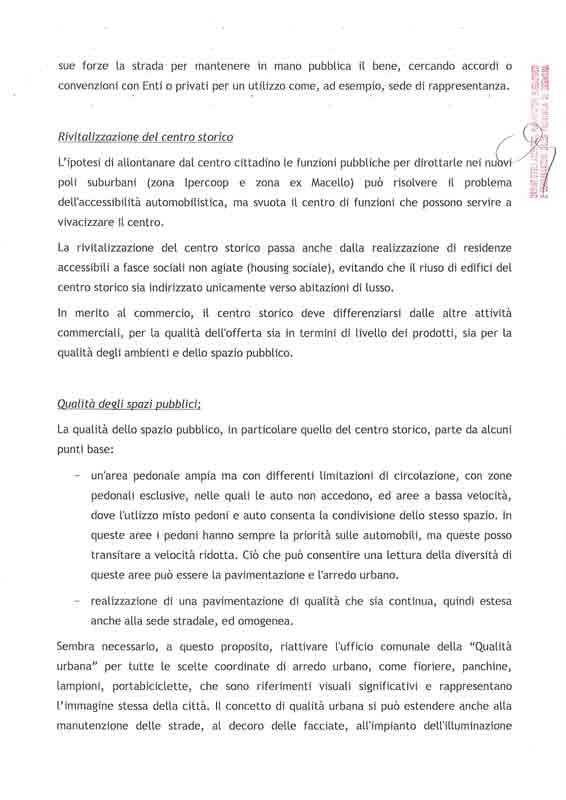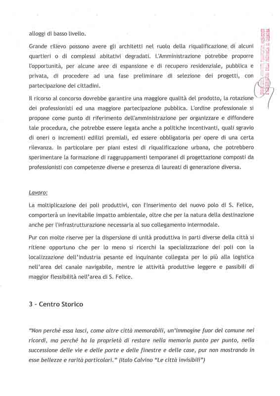 Nella premessa i professionisti chiedono, come già avvenuto in altre città ad esempio a Piacenza, la creazione di un “Urban Center” dove siano esposti i progetti più importanti di trasformazione edilizia e urbana, sia pubblica che privata, per coinvolgere direttamente i cittadini nelle scelte di trasformazione della città.