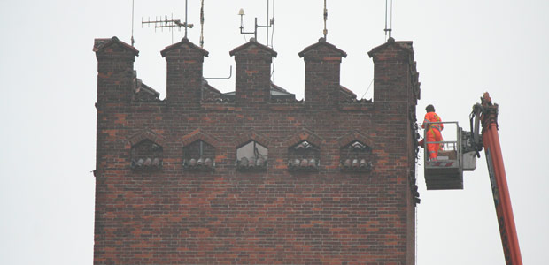 Proseguono le operazioni di allestimento delle luminarie in città. Questa mattina tecnici al lavoro in cima alla torre dell’acqua di palazzo comunale, con un elevatore, per la posa delle luci natalizie. Ieri sera le attività di allestimento si erano invece concentrate sulla facciata di palazzo comunale e sugli alberi di piazza Stradivari (leggi l’articolo).