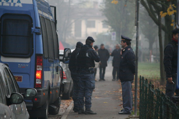 Seguono insulti all’indirizzo dei leghisti, che dalla loro postazione ascoltano scambiandosi qualche battuta ma evitando di raccogliere la provocazione. Lungo la via che separa i due gruppi, la camionetta della polizia parcheggiata e qualche poliziotto. Altri agenti percorrono il parco per scoraggiare possibili ‘incursioni’ o contatti tra leghisti e autonomi.