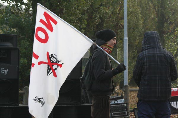 Agenti di polizia e carabinieri presidiano la zona con discrezione. E’ solo da dopo le 10 che dall’altro capo del parco (verso via del Sale), neanche cento metri più avanti, cominciano ad organizzarsi i ragazzi del centro sociale. Musica ad alto volume, bandiere ‘No Tav’ e abbigliamento in nero: una decina di autonomi intona il controcanto al Carroccio. Tra loro, anche Alfredo Zametta, uno dei ragazzi finiti al pronto soccorso dopo la rissa di questa estate ai giardini, sempre tra lumbard e autonomi.