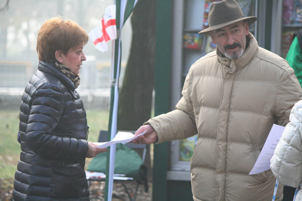 I leghisti si presentano intorno alle 9,30. Dalle auto scaricano tavolini e materiale per allestire il gazebo all’angolo del parco accanto all’edicola. In tutto i militanti sono una ventina, tra i quali il vicesegretario Alessandro Carpani e il consigliere comunale Giovanni Ferraroni.