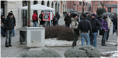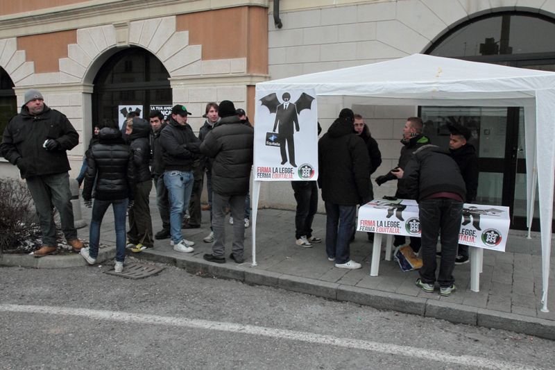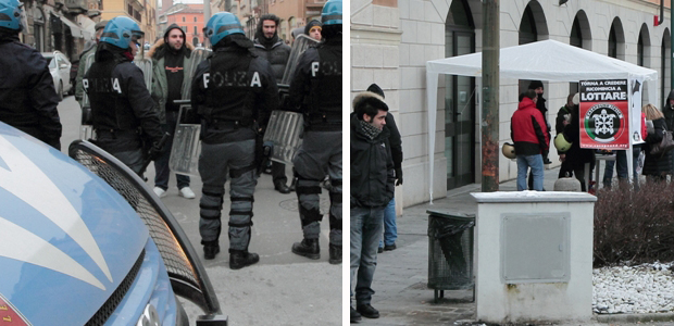 Presidio di CasaPound con raccolta firme contro Equitalia (a favore di una legge per una riforma dell’ente) e parallelamente contestazioni dei centri sociali. Le forze di polizia hanno vigiliato, scongiurando il pericolo di scontri in città nel pomeriggio. Sul posto si è attivato in prima persona il questore Antonio Bufano.