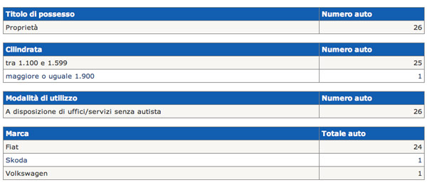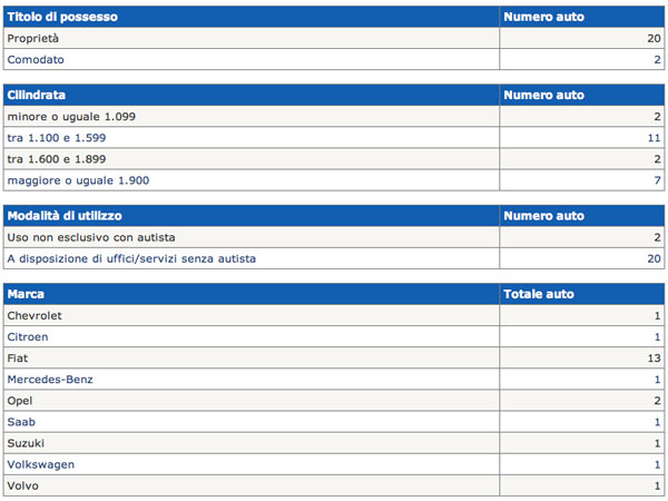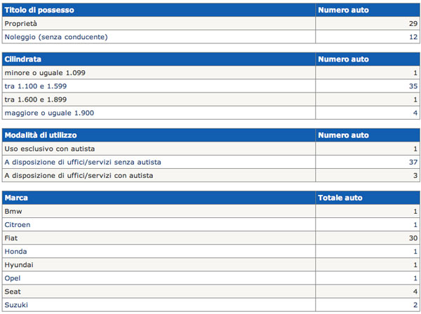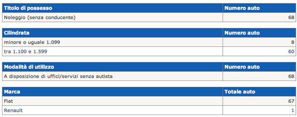 In base ai conteggi del Ministero, i dati rivelano una riduzione dei costi del 10% rispetto allo scorso anno. «Il censimento 2011 presenta un trend positivo di riduzione dei costi – ha detto il ministro Patroni Griffi – ma permangono alcune criticità come rilevanti disomogeneità territoriali, numero troppo elevato di auto di proprietà, numero eccessivo di auto obsolete e inquinanti, numero non irrilevante di auto non utilizzate, numero eccessivo di auto oltre i 1.600 cc».