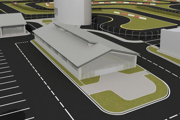 Nell’impianto sono presenti, inoltre, aree per le esercitazioni di guida, con asfalto irrigabile e zone per le prove di slalom, aderenza e aquaplaning. All’interno, anche un edificio didattico da 400 mq, contenente tre aule didattiche e due sale polifunzionali. L’edificio box su tre piani ospita 12 box comunicanti tra loro, uffici, cucina, dispensa, magazzino, un ristorante con terrazza panoramica da 500 metri quadrati, spogliatoi e servizi. L’edificio fiera è ampio 1.500 metri quadrati e ospita un sistema di pareti mobili per modulare gli spazi secondo necessità. Spazio anche ad un centro commerciale che consiste in un edificio di 900 mq al piano terra e 240 mq al piano soppalcato con sei negozi, un bar e un centro medico.