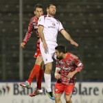 Grigiorossi in vantaggio al 25′: Possanzini infila in rete di testa dopo un cross di Le Noci e un primo tocco di testa di Dettori indirizzato proprio verso la punta ex Brescia. Contestato pareggio del Trapani al 39′: Tedesco carica Alfonso, il pallone sfugge dalle mani del portiere e lo stesso Tedesco spinge la sfera in porta. La prima frazione si chiude con un legno colpito da Minelli di testa (48′).