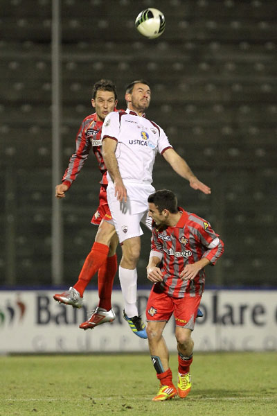 Grigiorossi in vantaggio al 25′: Possanzini infila in rete di testa dopo un cross di Le Noci e un primo tocco di testa di Dettori indirizzato proprio verso la punta ex Brescia. Contestato pareggio del Trapani al 39′: Tedesco carica Alfonso, il pallone sfugge dalle mani del portiere e lo stesso Tedesco spinge la sfera in porta. La prima frazione si chiude con un legno colpito da Minelli di testa (48′).
