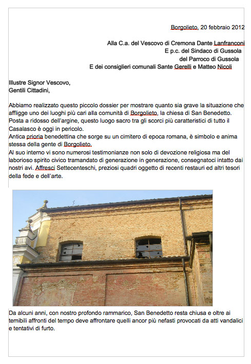 Fermiamo la distruzione della chiesa benedettina di Borgolieto (Gussola) Un dossier sul degrado e i vandalismi