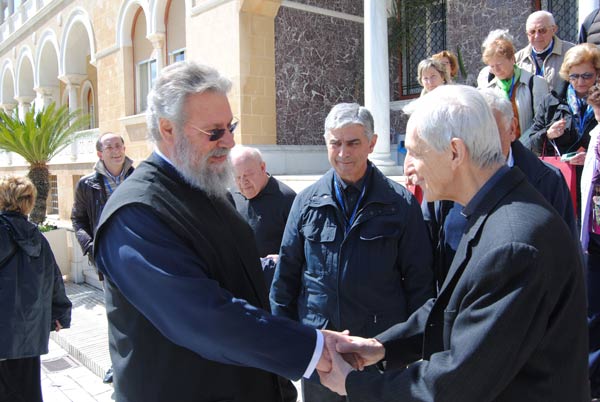 Ma a caratterizzare la giornata è stato in particolare l’incontro con l’arcivescovo ortodosso di Nicosia, Sua Beatitudine Chrisostomos II. Il patriarca di Cipro ha descritto il dolore della sua Chiesa per la divisione della nazione tra greco-ciprioti e turco-ciprioti. In modo particolare ha spiegato la situazione di abbandono di molti edifici sacri cristiani nella parte controllata dai musulmani: «È dall’anno dell’occupazione (1974) – ha spiegato Chrisostromos II – che non possiamo occuparci delle nostre chiese, che stanno letteralmente cadendo a pezzi». Il presule ha poi spiegato come la sua Chiesa sia tra le più antiche di fondazione, vera e propria porta di accesso del Cristianesimo in Europa. A ciascun pellegrino il patriarca ha offerto un volume sui monumenti cristiani del nord del paese.