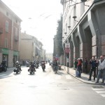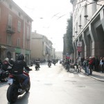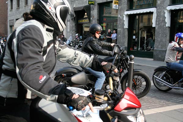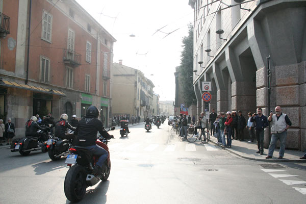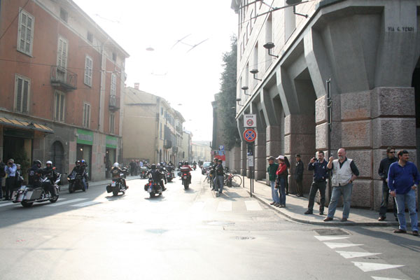 Da piazza Stradivari il lungo serpentone di caschi e motori
