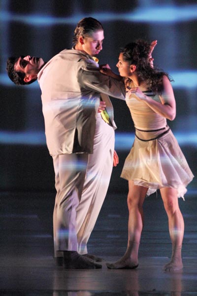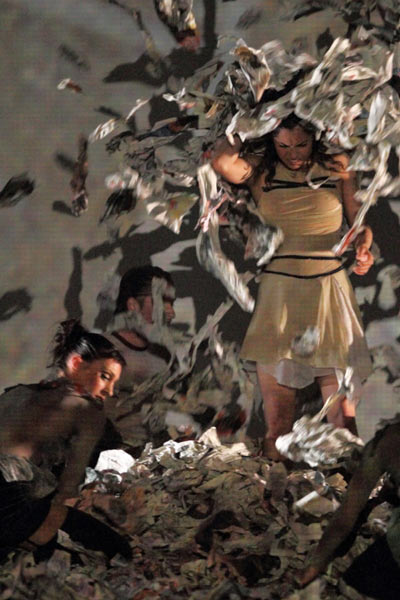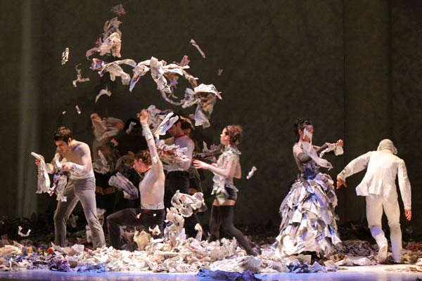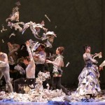 Settanta minuti dentro il magico mondo di Alice. Il viaggio della compagnia Arteballetto nella storia di Lewis Carroll, su coreografie di Francesco Nappa, ha entusiasmato il pubblico del teatro Ponchielli, accorso per l’appuntamento della rassegna La Danza. La magia fin dai primi momenti, ancora prima dell’apertura del sipario sul quale compare proiettata la scritta ‘Alice nel paese delle meraviglie’. Poi, il buio e lo stupore delle tante bambine in sala: “C’è scritto Alice!”. La scena spoglia, sul fondo l’immagine di un albero bianco, sul palco l’Alice ‘reale’ che con la sorella maggiore balla una danza giocosa ed ironica. L’ingresso del bianconiglio prelude al salto nel sogno. Alice cade nell’albero, grazie agli effetti video di Gilles Papain, e sparisce. Ricompare altissima davanti a Pincopanco e Pancopinco, fratelli siamesi, emblema della dualità, che ballano affiancati dentro un’enorme ghiaccia per due. C’è la Donna Filata, la sorella che appare in sogno vestita di fili bianchi, il Brucaliffo che porta sul dorso la bella Alice in un gioco di gambe, di braccia, di prese. La Regina di Cuori è la Regina dello Scoop con una corte di otto ballerini e una gonna ‘mobile’ fatta di fogli di giornale. Alice spunta dalla gonna, facendo arrabbiare la Regina dello Scoop. I tronchi si trasformano in tubi da cui escono tantissime pagine di quotidiano che coprono il palco e, poi, sommergono la bambina. L’ultima tappa del viaggio è dedicata all’amore con un passo a due tra Alice e il Cappellaio Matto, personaggio sobrio che trascina la giovane in una danza sensuale, su una musica a tratti troppo ripetitiva. Alla fine il percorso si chiude: il Cappellaio Matto sparisce e Alice si ritrova al punto di partenza, nel parco a danzare con la sorella. Le rimane il ricordo di quel mondo abitato da personaggi strani e da sentimenti forti. L’Alice di Nappa non balla una coreografia pura, ma una coreografia espressiva ed umorale. L’effetto è il nonsense della storia di Carroll, modernizzato e magico.
