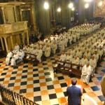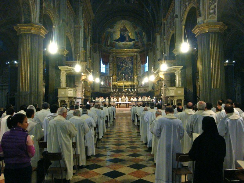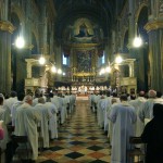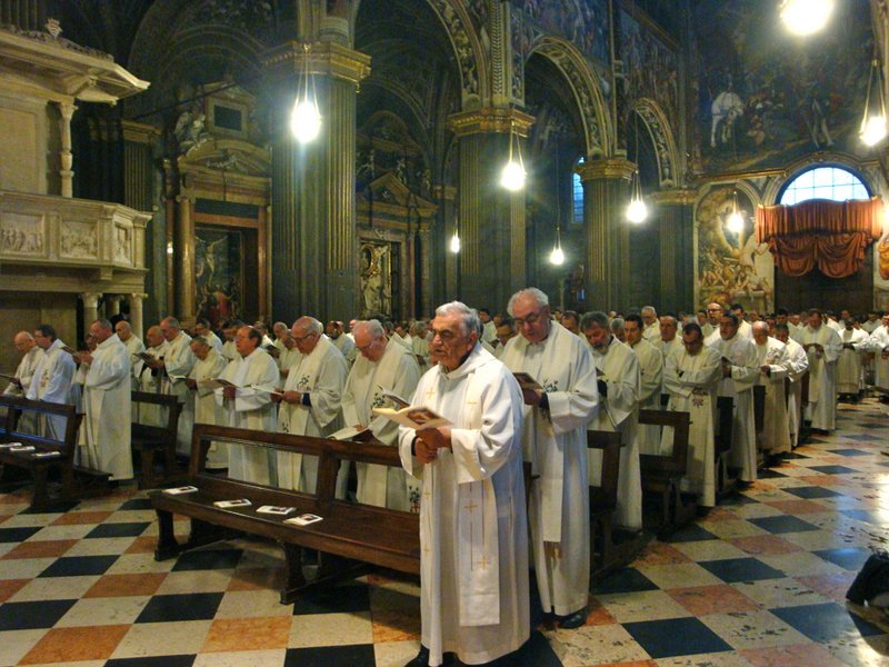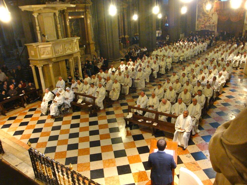 Questa mattina il Duomo era pieno dei presbiteri diocesani, invitati dal Vescovo a mantenere la memoria del loro sacerdozio e ringraziare per il dono ricevuto, con la preghiera; ha poi gioito del fatto di poterlo fare insieme nel segno della condivisione e della fraternità che tutti accomuna, col rinnovo delle promesse sacerdotali.