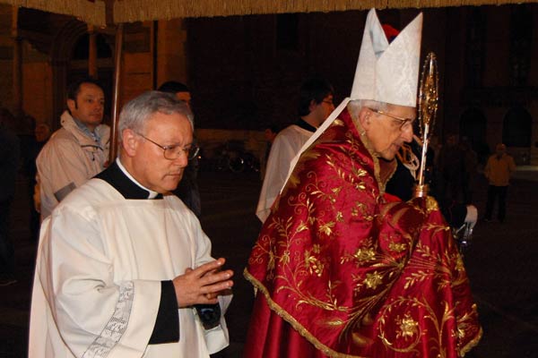 “Una compassione che lo ha spinto a dare tutto, persino a caricarsi dei peccati degli altri e a sentire la lontananza dal Padre”. Il vescovo Lafranconi ha tratteggiato così l’atteggiamento di Cristo quando, decidendo di compiere il disegno di Dio fino in fondo, salì sulla croce tra gli insulti della folla. Alle parole di irrisione egli oppose espressioni di perdono, addirittura cercando delle scusanti per un comportamento a dir poco bestiale dei suoi aguzzini. E sull’esempio di Cristo anche i suoi discepoli devono imparare a caricarsi dei peccati degli altri, a perdonare, a sopportare pazientemente il male. Infine un accenno alla perdita del senso del peccato che come conseguenza ha la dimenticanza dell’ampiezza della misericordia del Padre. L’occasione per queste importanti riflessioni è stata la processione della Sacra Spina, celebrata venerdì 6 aprile, nel centro storico di Cremona. Un evento di fede che quest’anno ha richiamato migliaia di persone: una lunga fila di fedeli ha ascoltato le meditazioni sulle sette parole di Cristo in croce accompagnate da alcune immagini artistiche proiettate su alcuni palazzi lungo il percorso. Al termine mons. Lafranconi ha benedetto i fedeli con la reliquia che secondo la tradizione faceva parte della corona di spine con cui Cristo fu proclamato re dai soldati romani: un dono dell’unico papa cremonese – Gregorio XIV – alla Cattedrale. In rappresentanza dell’amministrazione comunale ha partecipato al sacro rito l’assessore alle politiche giovanili Jane Alquati, mentre per la provincia era presente l’assessore alla cultura Chiara Capelletti.
