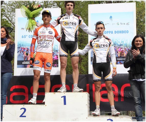 Si è svolta stamane, giorno di Pasquetta, la 65ma edizione della classicissima per juniores “Coppa Dondeo”. Dopo l’abbandono del CC Cremonese 1891 che l’ha organizzata per decenni, la manifestazione per la prima volta è stata a cura del Triathlon Stradivari di Massimo Ghezzi che ha visto il suo lavoro premiato dalla partecipazione di 175 concorrenti e (152 i partenti) da un folto pubblico all’arrivo e soprattutto sul circuito montuoso piacentino di Bacedasco-Paolini. Si è imposto il bergamasco Lorenzo Rota del Team Aurea Zanica davanti a Michael Giannelli (Romagnano) e ad un altro bergamasco compagno di team del vincitore, Nicolò Oggioni. E’ stato proprio lo squadrone orobico a farla da padrone in questa gara.