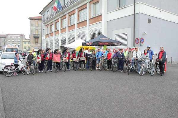 Bicincittà nonostante il maltempo. Già rinviata domenica scorsa per pioggia, nella mattinata si è svolta la ventesima edizione dell’iniziativa organizzata da Uisp e Fiab. Una trentina di ciclisti si sono ritrovati intorno alle 9 a piazza della Libertà, davanti al comando dei Vigili Urbani. Tra i presenti anche alcuni Alpini in sella a bici originali d’epoca. Qualche modifica al programma per il tempo (annullata la destinazione dell’Associazione Diabetici a Marzalengo) e alle 10 il via al corteo. Sulla bici fino a via Tonani per unirsi ai cinquanta partecipanti alla pedalata dell’Associazione Diabetici. Un giro cittadino e poi il ritorno in piazza della Libertà. Presente alla partenza dell’Associazione diabetici il sindaco Oreste Perri.