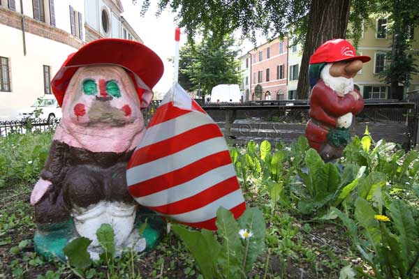 Cremona si prepara alla sfida Play Off. Anche i nanetti si vestono di grigiorosso. Sulla rotonda di Largo Manini, davanti al bar Aporti alcuni lettori ci hanno segnalato dei nani da giardino con cappelli e bandierine della Cremonese. Al bar Aporti dicono di averli trovati nei giorni scorsi liberati nell’aiuola. Poi, la vestizione. Un portafortuna per la squadra di Brevi che domenica deve vincere a Trapani per guadagnarsi la partecipazione alla fase successiva e non dover rinunciare a lottare per la serie B.