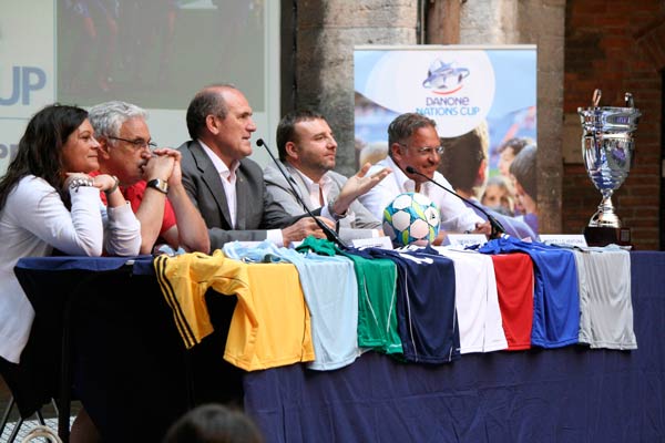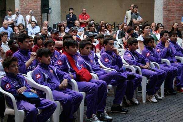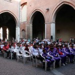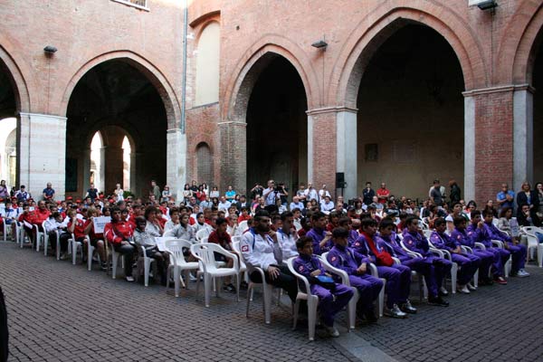 Cerimonia di inaugurazione della Danone Nation Cup nel cortile Federico II. Presenti le otto squadre che domenica al Centro della Cremonese si disputeranno il titolo nazionale del torneo di calcio che coinvolge in 40 nazioni 2 milioni e mezzo di ragazzi di età compresa tra gli 11 e i 12 anni, organizzato da Danone in collaborazione con il CSI – Centro Sportivo Italiano. Da Reggio Calabria l’Armando Segrato – Promesse Viola, da Crotone la Real Kroton, da Cava de’ Tirreni (Salerno) i Red Lions Cesinola, da Napoli la Polisportiva Piscinola, da Milano la compagine Masseroni Marchese, da Bergamo l’Aurora Seriate, dall’Aquila la Real Marsica e a fare gli onori di casa la squadra grigiorossa dell’U.S. Cremonese. Al tavolo della autorità, il sindaco Oreste Perri, l’assessore comunale Marcello Ventura e l’assessore provinciale Chiara Capelletti, affiancati da Renato Picciolo, direttore tecnico Csi nazionale, e da Simone Ceruti, direttore relazioni esterne Danone. “Per Cremona è un onore ospitare questi piccoli atleti – ha detto Perri -. Siate corretti in campo e generosi, solo così potrete raggiungere gli obiettivi. Che vinca il migliore!”. Il vincitore del titolo italiano avrà diritto ad accedere alla fase finale della World Final, in programma il 9 settembre allo stadio di Varsavia (Polonia).