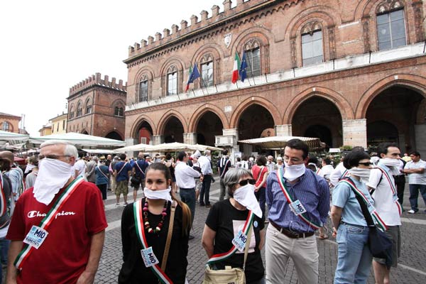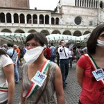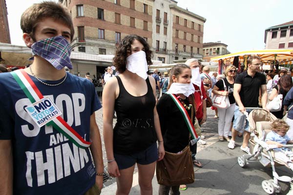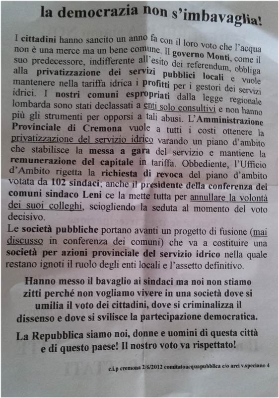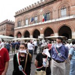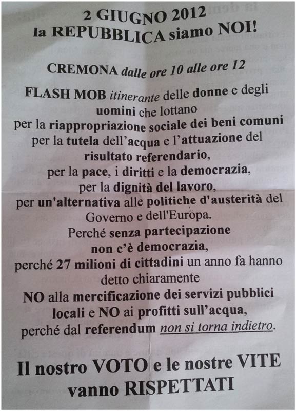 Flash mob per l’acqua pubblica in mattinata in centro. Attenzione dei passanti catturata dall’iniziativa organizzata a distanza di un anno dai referendum.