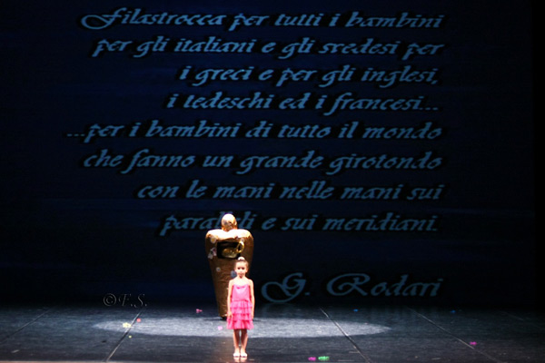 Un salvadanaio, vuoto, è in mezzo alla scena. Comincia così, nel silenzio rimbombante dei titoli cupi dei telegiornali, lo spettacolo ‘C’era una volta…nell’europa unita’ del Centro Danza Sporting Life di Rossana Bettoli. Un’attualità buia, minacciata dalla crisi economica, dalla disoccupazione, dalle Borse che bruciano milioni nel giro di pochi attimi. Poi, sulle coreografie di Rossana Bettoli, Monica Salvoldi, Cinzia Guadrini, Stefania Brianzi, Davide Manico, Mattia Toso, Francesca Corazza, il passaggio di un cantastorie accompagna lo spettatore per mano dal mondo reale a quello delle fiabe. Per leggere, con gli occhi dei bambini, il presente. Salpando verso il mondo incantato dove tutto è possibile, tappa dopo tappa, per scoprire che ogni fiaba ha, ancora qualcosa da insegnare. Con l’augurio e la speranza di un’Europa unita.