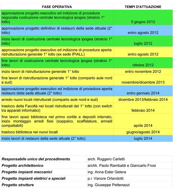 Gli interventi previsti, che inizieranno nei prossimi giorni, rispondono ad una logica di semplificazione impiantistica e consentono di liberare il piano interrato del palazzo, per destinarlo a deposito per la nuova biblioteca universitaria. E’ in fase di ultimazione la progettazione esecutiva della parte più consistente del primo lotto di lavori, dell’importo pari ad 2.100.000,00 euro con la quale si provvederà al recupero degli spazi lasciati liberi dall’I.P.I.A.L.L.; l’approvazione del progetto e l’indizione della gara d’appalto è prevista entro il mese di agosto. I lavori del primo lotto saranno avviati tra ottobre e novembre, al termine dei lavori dello stralcio appena appaltato. Sempre entro agosto è prevista anche l’approvazione del progetto definitivo del secondo lotto, che riguarderà il restauro del palazzo storico vero e proprio, ulteriore passo previsto dalla convenzione tra Fondazione Cariplo e Distretto Culturale della Provincia di Cremona, nell’ambito del quale il complessivo intervento sul Palazzo Raimondi ha ottenuto un finanziamento di 700.000,00 euro. Come avvenuto per il restauro di Palazzo Persichelli, sede degli uffici giudiziaria, i lavori saranno svolti in maniera tale da consentire lo svolgimento dell’attività didattica.