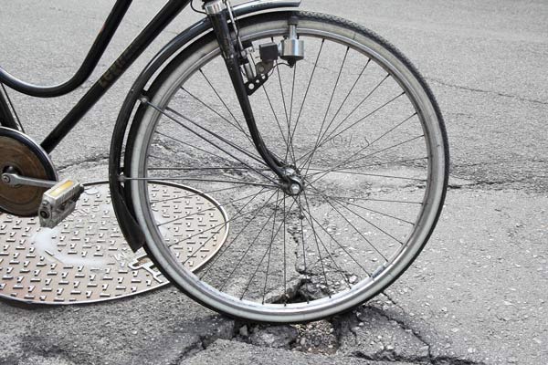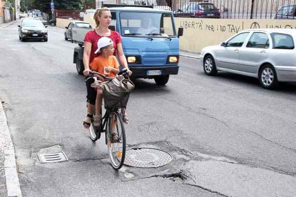 In città buche e strade sconnesse Un pericolo per ciclisti e centauri
