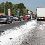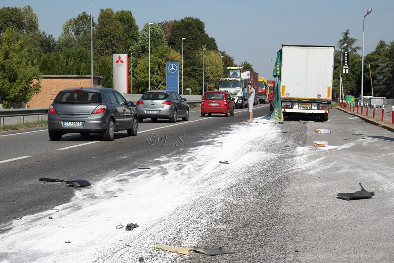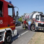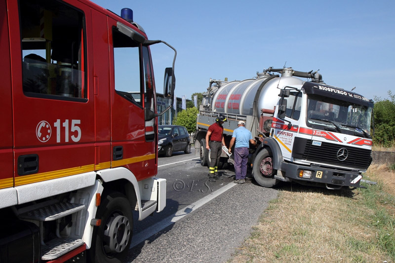 Scoppia una gomma, incidente tra camion sulla Castelleonese