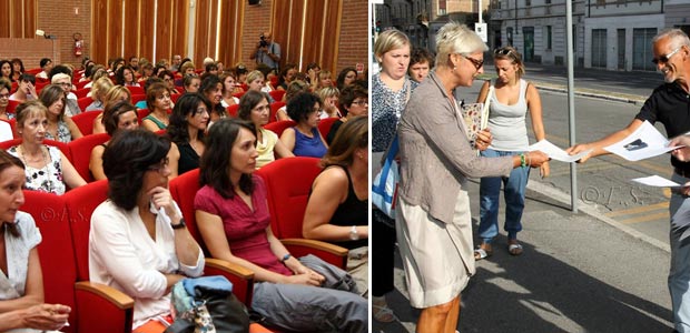 Ore 16: un bambino in una valigia. E’ questa l’immagine stampata sul volantino distribuito dai sindacati Cgil, Cisl e Uil al tradizionale saluto da parte del sindaco agli insegnanti e al personale ausiliario delle scuole comunali che si è svolto nella mattina al teatro Monteverdi. Un’azione di protesta contro la privatizzazione del tempo lungo, a margine dell’incontro tra il primo cittadino e il corpo docente al quale ha partecipato anche l’assessore alle Politiche Educative Jane Alquati. Via, dunque, con qualche polemica all’anno scolastico.