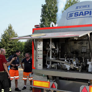 Cisterna di ossigeno fuori strada, rischio incendio