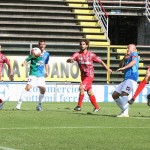 Partita vibrante sin dalle fasi iniziali, con i grigiorossi abili a sfruttare le sponde aeree di Djuric che liberano al tiro Marotta e Carlini. La FeralpiSalò imposta invece una gara tatticamente simile a quella dell’Albinoleffe, chiudendo bene gli spazi e provando a ripartire in contropiede. Nel primo quarto d’ora l’attaccante bosniaco è il più propositivo e il suo costante movimento mette in difficoltà gli avversari. Ci provano Marotta, Carlini, Djuric e ancora Carlini, ma la difesa bresciana è sempre puntuale nelle chiusure. Alla mezz’ora si svegliano gli ospiti con Montella, che dopo una serie di finte impegna Alfonso con un diagonale potente; immediata la reazione grigiorossa con il tentativo di Fietta che regala però soltanto l’illusione del gol ai tremila dello Zini. La spinta degli uomini di Brevi si fa più insistente nel finale di frazione: Marotta dapprima centra il palo, quindi a tu per tu con Gallinetta fallisce la più facile delle occasioni sparando in bocca al portiere bresciano. Al 44’ gli sforzi vengono però premiati da Moi che sul traversone dalla sinistra di Armenise insacca con un preciso colpo di testa.