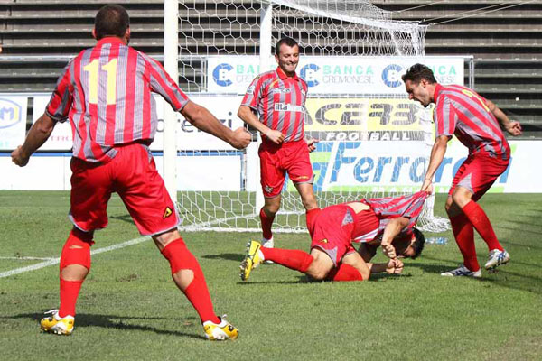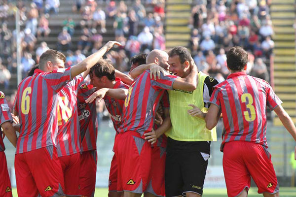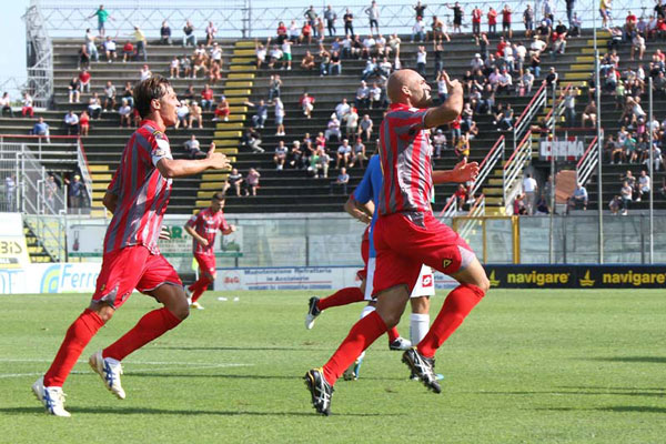 Esultanza grigiorossa al primo goal (foto Francesco Sessa)