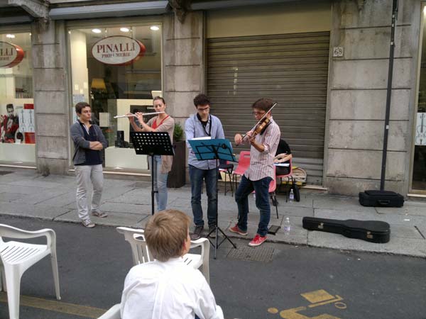 Corso Garibaldi e violini, gran folla in centro Funziona l’animazione fai da te e la qualità dei concerti