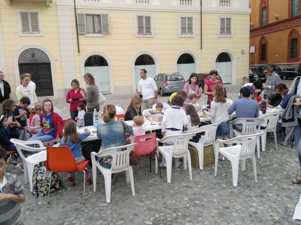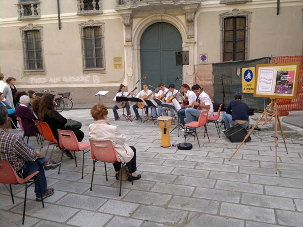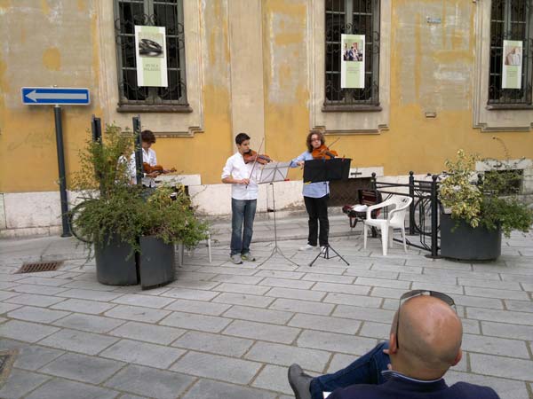 Tornando alla giornata di ieri, vogliamo segnalare particolarmente il laboratorio espressivo di piazza S.Agata, che ha saputo coinvolgere molti bambini sia per l’ascolto di favole che per la preparazione di lavoretti con tema il violino, e gli allievi della scuola di chitarra di Casalbuttano che hanno deliziato a lungo un buon pubblico con le loro esecuzioni.