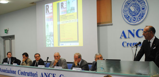 “Non è stata una scelta casuale presentare nella sede dell’ANCE il nuovo Regolamento edilizio del Comune di Cremona, bensì una scelta dettata dalla volontà di testimoniare la vicinanza dell’Amministrazione ad un settore che sta attraversando una fase molto critica e, nel contempo, lanciare un messaggio di ottimismo per il futuro: il nuovo regolamento rappresenta infatti un’opportunità per il rilancio dell’attività edilizia. Il testo elaborato, approvato con voto unanime dal Consiglio comunale il 27 settembre scorso, si colloca all’avanguardia rispetto ad altre realtà ed è frutto dell’intenso lavoro compiuto dai tecnici del Comune, arricchito dalle conoscenze e dalle esperienze professionali di tutti coloro che, a vario titolo, sono stati coinvolti in un ampio percorso fatto di ascolto, partecipazione e condivisione”. Con queste parole il vice sindaco ed assessore all’Urbanistica Carlo Malvezzi ha introdotto nella sala conferenze dell’Associazione Nazionale Costruttori Edili di Cremona, la presentazione ai rappresentanti del settore edile e degli ordini professionali del nuovo Regolamento edilizio del Comune di Cremona poi svolta dai tecnici dello Sportello Unico dell’Edilizia Marco Masserdotti, Achille Meazzi e Nicolò Gambino.