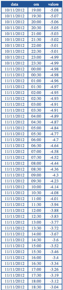 Tabella misurazioni Po (Cremona) 24ore – dati Aipo