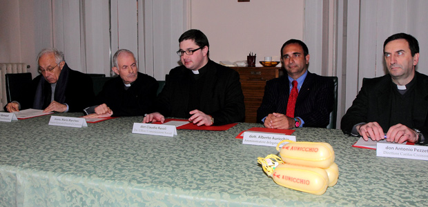 Collaborazione tra Diocesi di Cremona e azienda Auricchio nel segno della solidarietà: provoloni in vendita per raccogliere fondi necessari a sistemare le chiese lesionate dal terremoto dei mesi scorso, con l’obiettivo di far tornare alla normalità la vita delle nostre parrocchie colpite dal sisma. L’iniziativa, che parte in questi giorni e durerà circa un mese e mezzo, è stata presentata in mattinata in Curia.