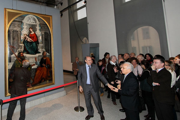 “E’ una chiusura d’anno veramente importante quello che sta vivendo la nostra città, portata ad una ribalta finalmente nazionale ed anche mondiale. – ha esordito il sindaco Oreste Perri portando il suo saluto ai presenti -. Abbiamo vissuto un’esperienza significativa lo scorso 30 novembre quando con l’organizzazione del convegno ‘I Musei del Nuovo Millennio’, che ha visto diverse realtà museali italiane e straniere convenire all’Ala Ponzone per riflettere insieme su esperienze e prospettive future dei musei. Quindi, lo scorso 5 dicembre, il tanto sospirato e a lungo atteso riconoscimento deciso a Parigi dall’UNESCO di iscrivere la tradizione liutaria cremonese nella Lista Rappresentativa del Patrimonio Immateriale dell’Umanità. Poi il Museo del Violino, che sta per essere inaugurato. Oggi siamo qui ad esprimere grande soddisfazione per l’opera di Ludovico Mazzolino ‘Madonna con Bambino in trono e Santi Andrea e Pietro’ che, dopo ventisette lunghi anni, è tornata finalmente ai suoi antichi splendori e visibile nella nostra Pinacoteca. Questo grazie ad un importante lavoro di conservazione curato dal Laboratorio del nostro Museo, CR.Forma – Azienda Speciale Servizi di Formazione Provincia di Cremona, con la supervisione dell’Opificio delle Pietre Dure di Firenze. Ringrazio tutti per l’impegno profuso, in particolare coloro che hanno fattivamente operato e l’Opificio per aver assistito costantemente i lavori.”