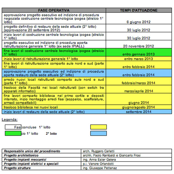 Come spiegano gli architetti Ruggero Carletti e Paolo Rambaldi, il 30 luglio scorso sono iniziati i lavori per la realizzazione dei nuovi locali tecnici interrati in Palazzo Raimondi, stralcio del più consistente primo lotto di recupero dello storico immobile finalizzato all’ampliamento della Facoltà di Musicologia. La scelta di costruire nel cortile principale un nuovo locale interrato, inizialmente non previsto, nasce per riunire in un unico spazio la sottostazione del teleriscaldamento, la vasca di accumulo dell’acqua per l’impianto antincendio con le relative pompe di circolazione, la cabina di trasformazione dell’energia da media a bassa tensione insieme a tutti i quadri elettrici, risponde ad una logica di semplificazione impiantistica e libera il piano interrato del palazzo quale ampio deposito per la nuova biblioteca universitaria. Questa opera permetterà di valorizzare al meglio il complesso storico vero e proprio.