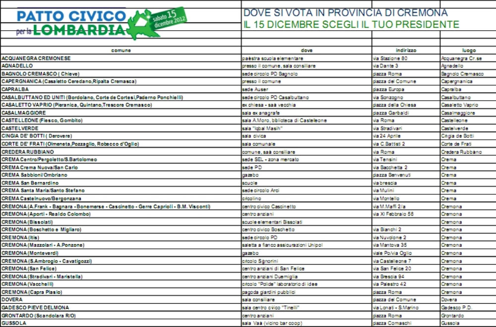 Regione, centrosinistra sceglie il candidato 68 seggi cremonesi aperti fino alle 20 Poi diretta Twitter di Cremonaoggi
