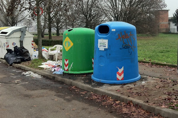 Spazzatura di ogni genere fuori dai cassonetti. Uno spettacolo vergognoso ed incivile, quello si nota passando da via Fatebenefratelli, al quartiere Zaist, proprio all’altezza dell’uscita della tangenziale. C’è di tutto: bottiglie, cartoni, confezioni di regali, di bottiglie, sacchetti neri dell’immondizia stracolmi, persino sedie e numerose paia di scarpe. Tutto selvaggiamente gettato per terra fuori dagli appositi contenitori della raccolta differenziata. Insomma, una discarica sul marciapiede. Uno spettacolo a dir poco indecente.